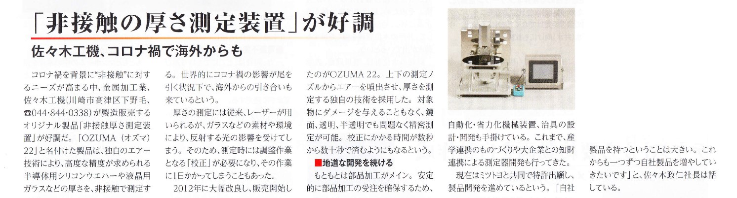 神奈川経済新聞7月号に非接触厚さ測定装置OZUMA22の紹介記事が掲載されました。記事内容はこちらから読むことができます。宜しくお願い致します。